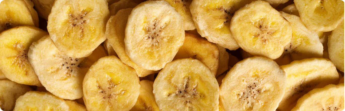 Banana chips are produced from healthy, crude bananas, that are peeled, washed, cut, fried in coconut oil and afterwards dipped in sugar syrup. According to the standards of quality of the respective countries of delivery.